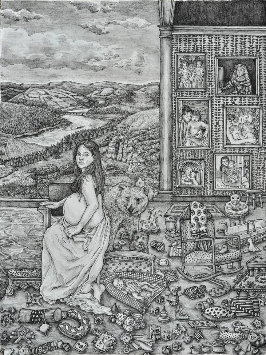 Pen, Imagined, Detailed. Con estas tres palabras define su obra Olivia Kemp, quien confiesa estar obsesionada con Rembrandt desde su infancia y sus deseos, si pudiera elegir, de compartir una comida con Rubens porque «seguramente sería un excelente conversador y la comida sería rica». La elección del flamenco no es casual, pues sus obras parecen compartir el goce y disfrute vital que transmiten las del maestro de Amberes. De hecho, la serie de los Sentidos de Rubens y Jan Brueghel el Viejo (Madrid, Museo Nacional del Prado, 1617-1618) inspira una de las obras más famosas de la artista. Esta inspiración en la imaginería clásica, en concreto la relacionada con Madrid y con el Museo del Prado, tiene su origen en la concesión de una beca Richard Ford para dos meses en el año 2015, que le permitió poder disponer de una silla, tiempo y tranquilidad para dibujar a partir de las maravillosas colecciones del Prado.
