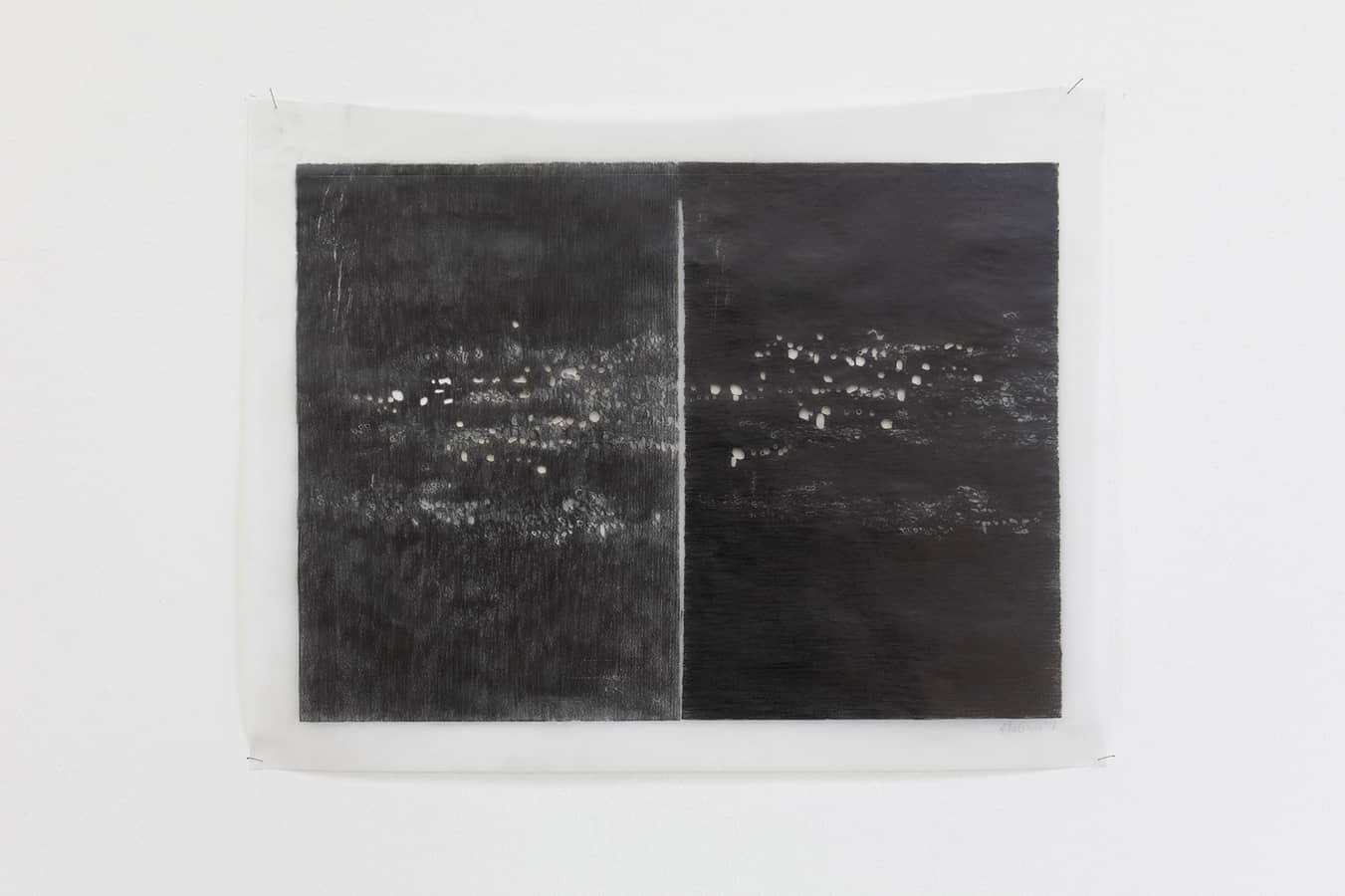 ALTEA GRAU VIDAL Auratic Translations 2023 Grabado a grafito sobre papel japonés 450 × 320 mm Proyecto creado en los talleres de la University for the Creative Arts < >